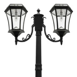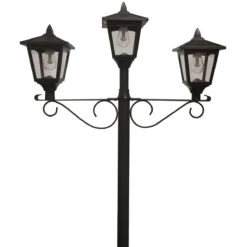 Solar LED Triple-Head Solar Lamp With Post Set And Planter – 90 Lumens – Black Finish – Gama Sonic