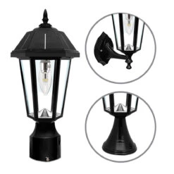 Solar LED Topaz Lantern Light – 50 Lumens – 3100K/6000K – Black Finish – Gama Sonic