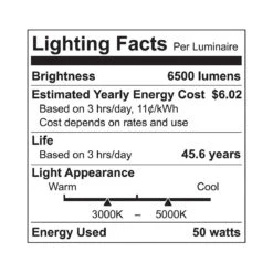 dimming, 50,000 hours of life, and operates on a 120-277V line.