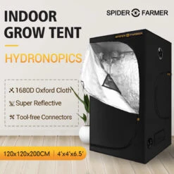 This 4ft. x 4ft. x 6.5ft. Indoor Grow Tent provides a stable environment for easy control of light and temperature for your indoor grow project. This tent blocks all light from escaping and is lined with 100% reflective mylar to boost the output efficiency of any grow tent setup. It includes sturdy steel bars for adding fans, lights, and filters. Easy, tool-free assembly.