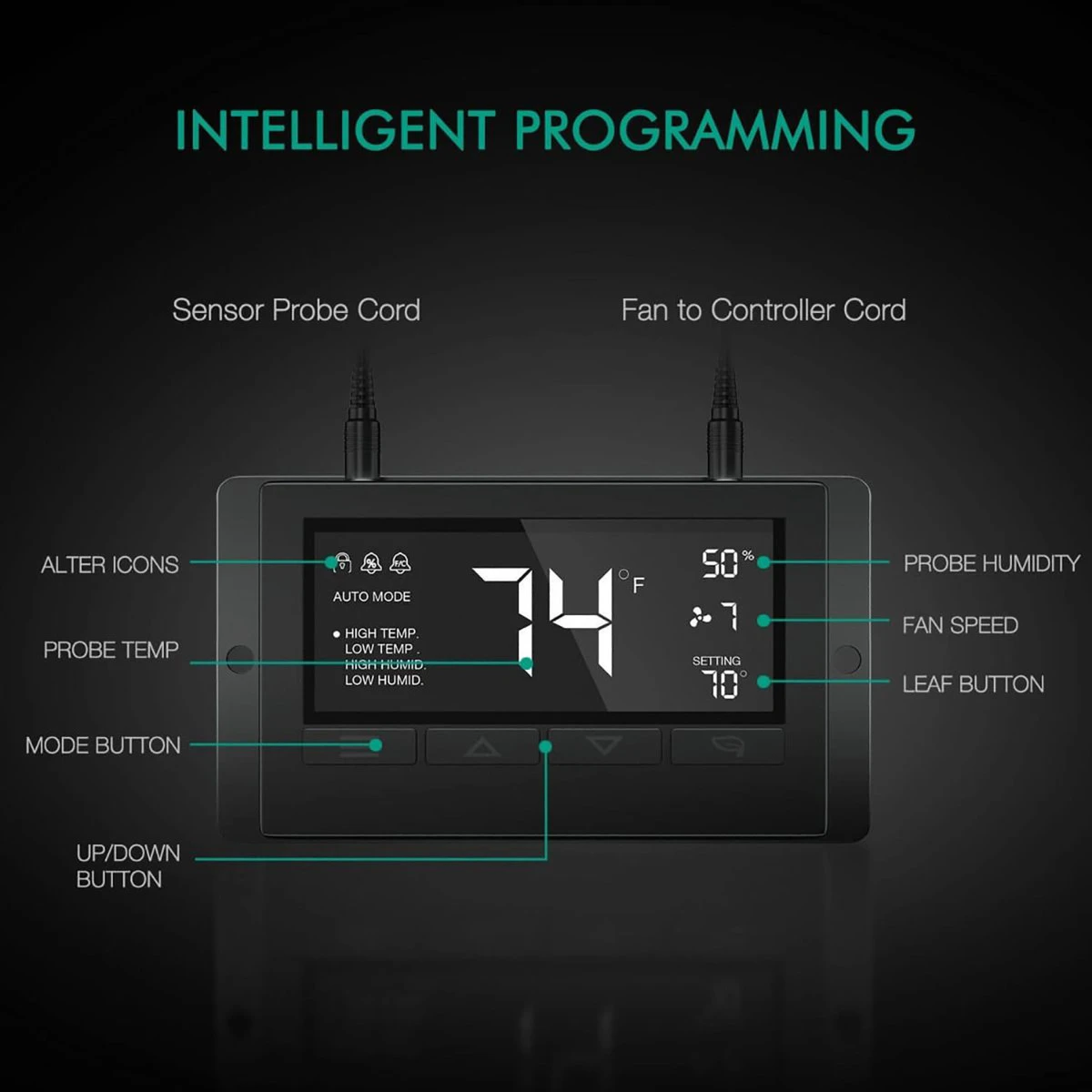This 4in. Inline fan and Carbon Filter Kit is ideal for a variety of uses in grow rooms. The fan is quiet (205 CFM) and controlled by a thermostat controller with numerous features including environmental monitoring, timing schedule, and a temperature/humidity alarm. The fan has 10 speeds, and the charcoal filter brings 100% fresh air and eliminates odors, harsh tastes, and particles.