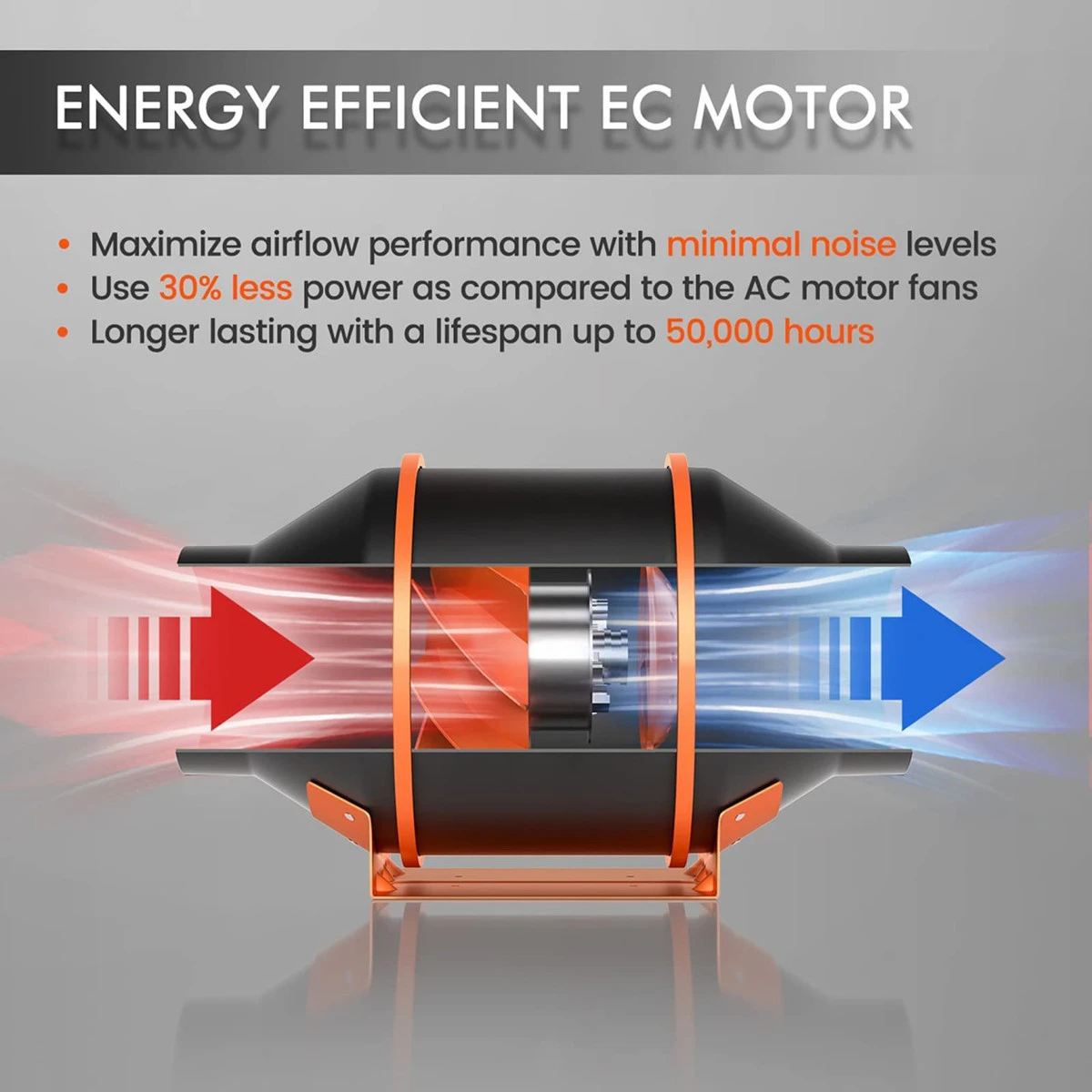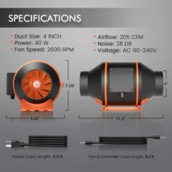 - Uses 40W of power while producing a strong airflow of up to 205 CFM and a low noise level of 28DB