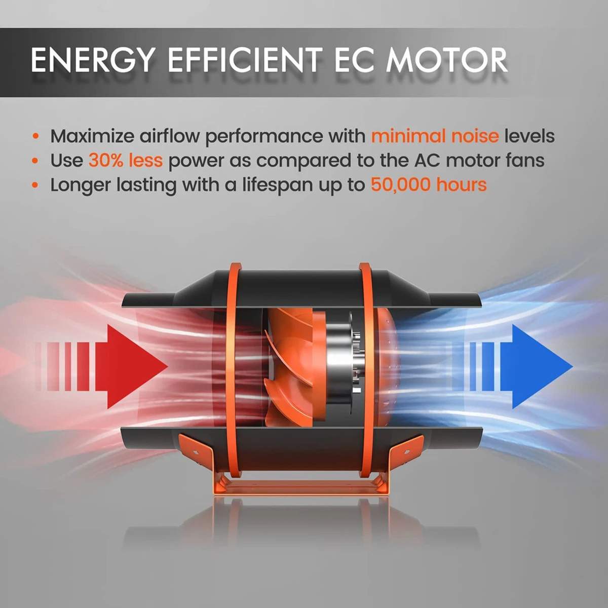 - Uses 50W of power while producing a strong airflow of up to 350 CFM and a low noise level of 32DB