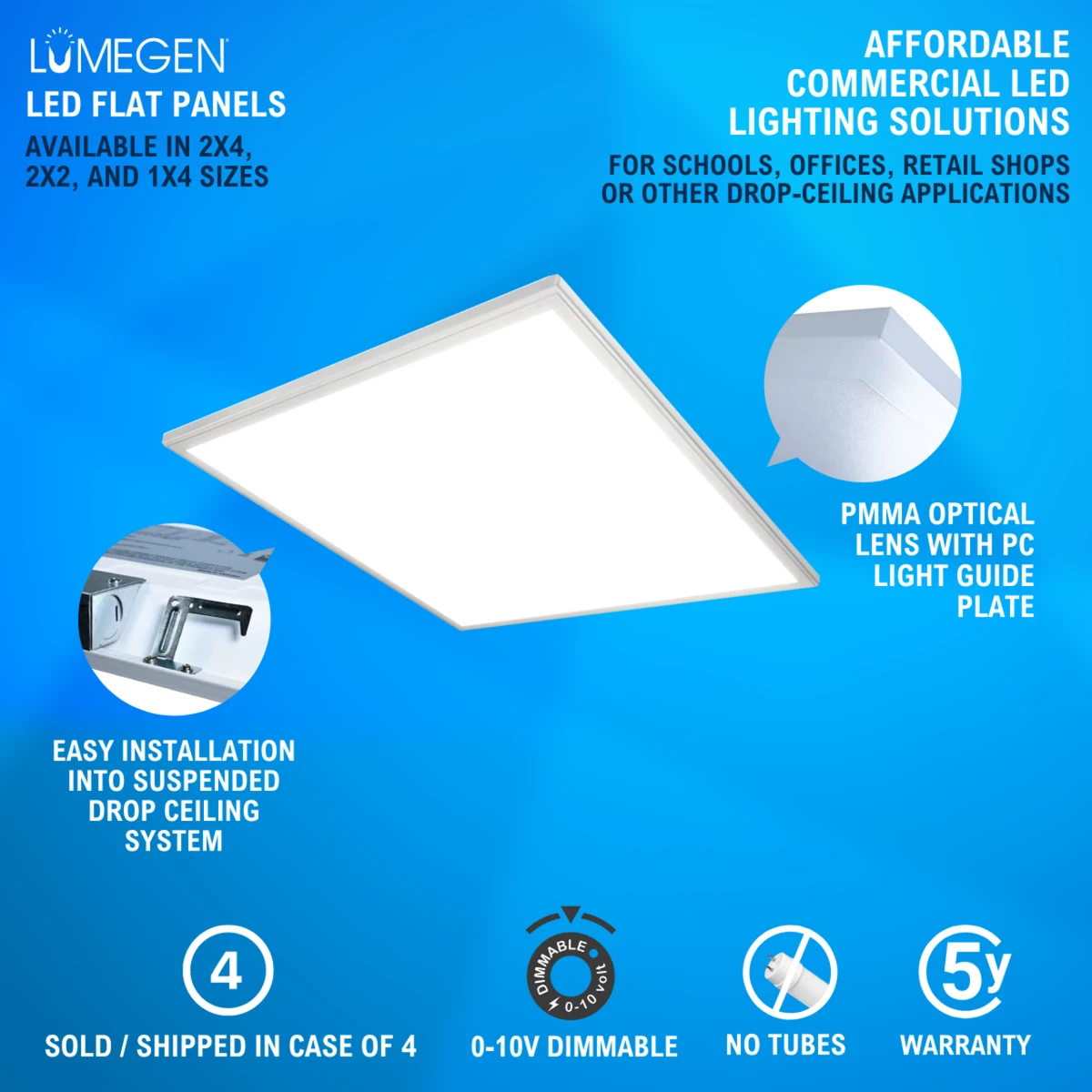 This product comes in a case of 4 LED 2×2 Panels.