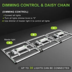 Simple dimming function and master light controller allow you to conveniently link and control up to 30 lights from one light driver making this commercial-cultivator’s preferred light solution for single or multi-tier racking and indoor shorter plant grow scenarios. The removable driver allows the user to place the driver in an easy-to-reach location and to reduce heat buildup around the light.
