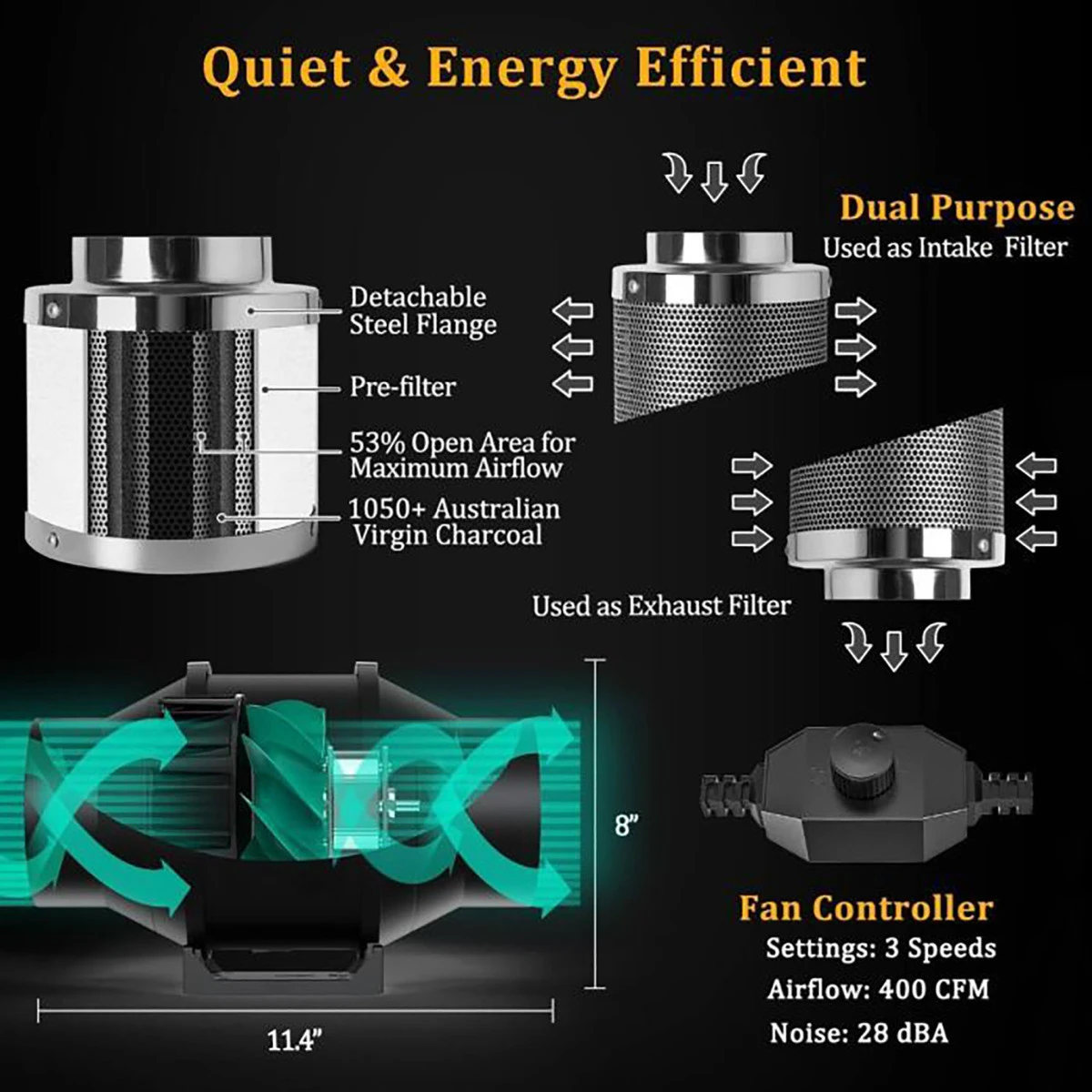 - 10 Speed 6″ Inline Fan (10-402 CFM Air Flow)