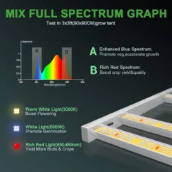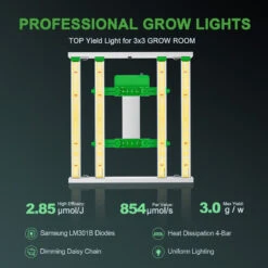 This LED grow light is made with Samsung LM301B LED chips to create a high efficiency up to 2.85 µmol/J!