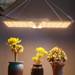 This LED grow light features an easy, out-of-the-box design and installation. Installation by hook and adjustable rope hanger. Simply plug in included power cord.