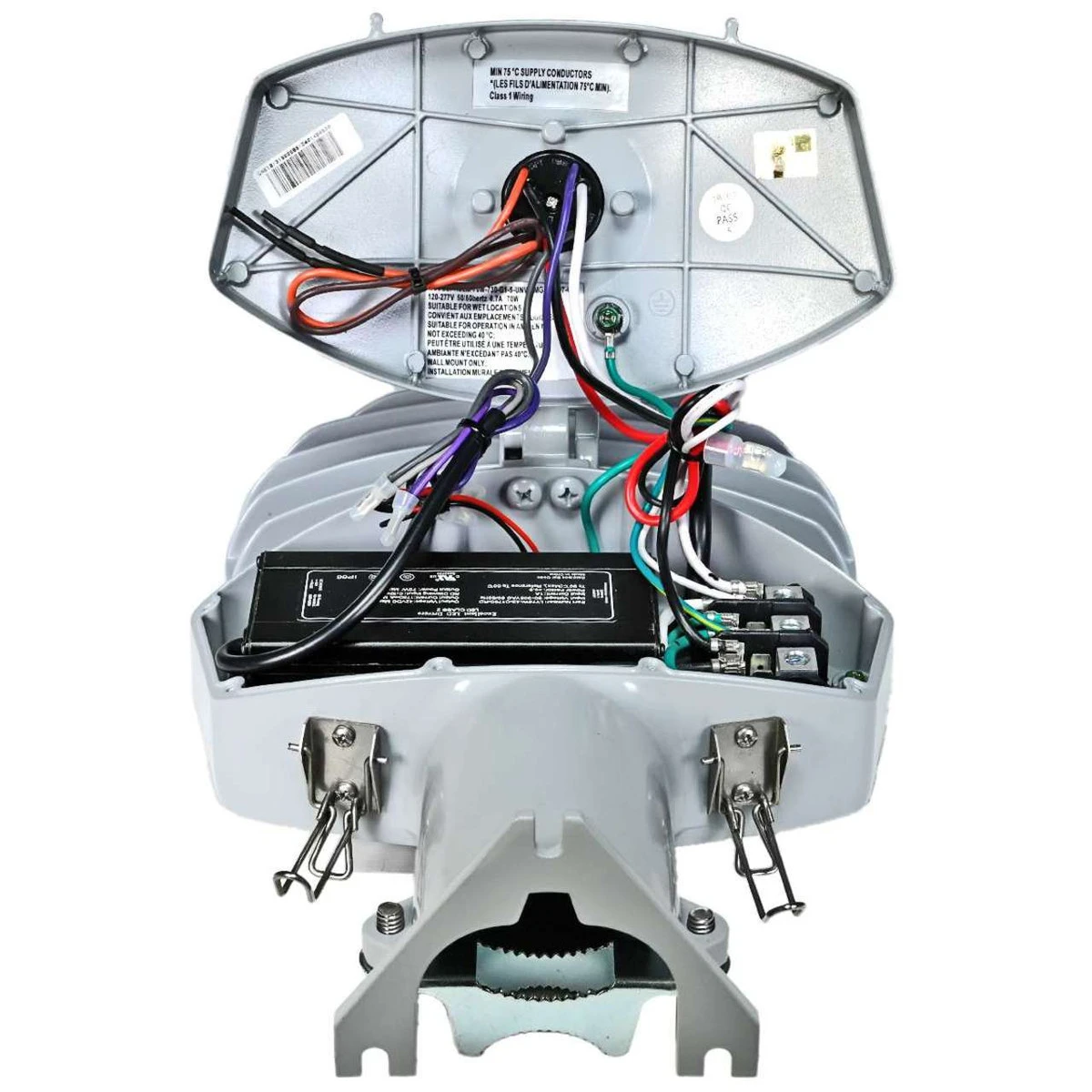 - The connection of the luminaire is done using a terminal block connector 600V, 85A for use with #2-14 AWG wires from the primary circuit, located inside the housing.