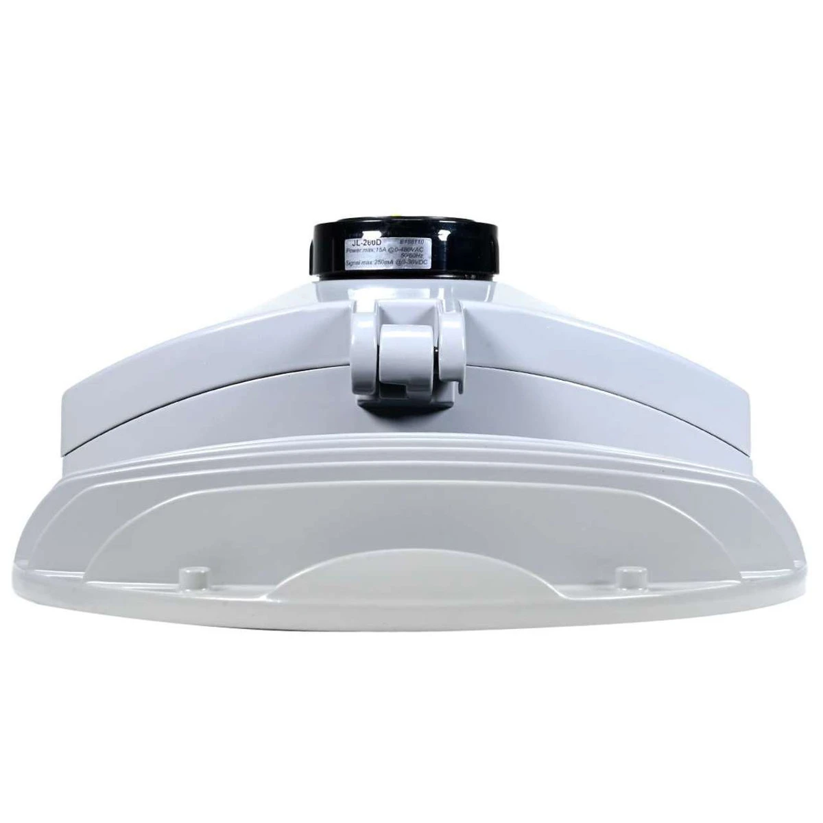 - Housing made of low copper die cast A380 Aluminum alloy. Fits on a 1.66″ O.D. to 2-3/8″ O.D. by 5-1/4″ minimum long tenon. Comes with a zinc plated clamp fixed by 2 zinc plated hexagonal bolts 3/8-16 UNC for ease of installation. Provides an easy step adjustment of +/- 5 deg tilt. A tool-less entry, hinged door opens upward to provide access to electronic components and to a terminal block.