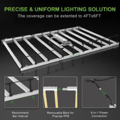 Not only is the driver removable, but also the light bars, which makes it easy to install, store and replace the light bars. It also allows cultivators to freely adjust the light bar space according to growing needs in order to maximize the light utilization. The bars can be configured for 4ft. x 4ft. or 4ft. x 6ft. grow spaces.