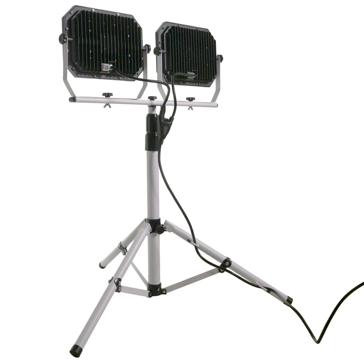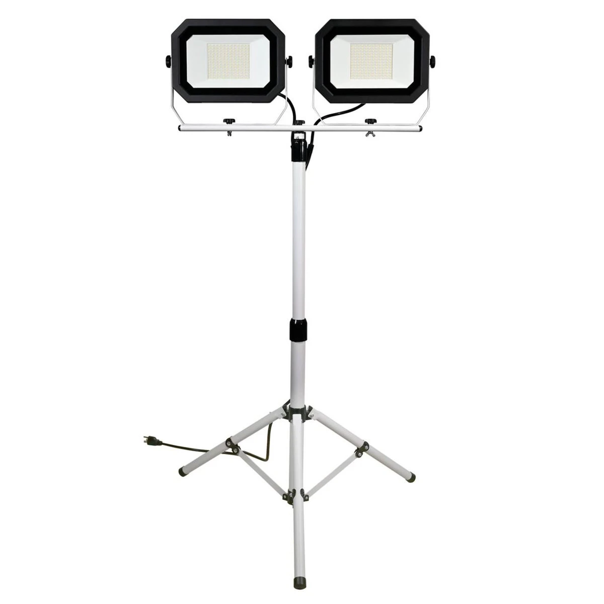 Lightup your workspace with this Tripod Dual-Head LED Work Light. Perfect for any projects which requires bright even light such as job sites where hardwired fixtures are not installed, painting rooms, garage work, and many more applications. It offers excellent heat dissipation allowing the light to operate cooler than traditional halogen work lights.