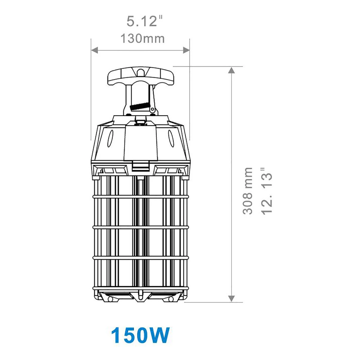 This 150W LED temporary work light uses LUMILEDS 2835 LED Chips which produces 18,000 lumens at 5000K and 360° beam angle to provide lighting in all directions around the light.
