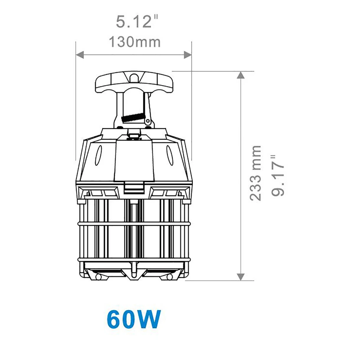 This 60W LED temporary work light uses LUMILEDS 2835 LED Chips which produces 7200 lumens at 5000K and 360° beam angle to provide lighting in all directions around the light.
