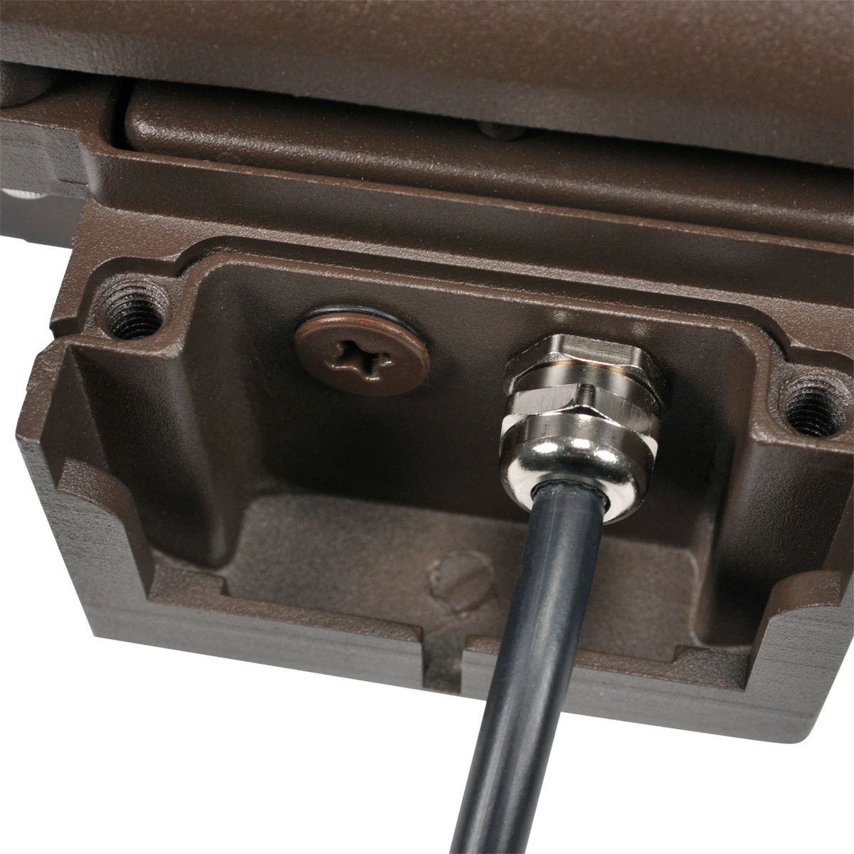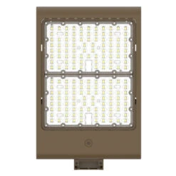 This LED area light has an aluminum housing with a dark brown powder coated finish. It is IP65 rated meaning it is dust-tight and can withstand direct water spray. The lens is heat-resistant PC lens with anti-UV coating. It includes a Type III lens meaning it cast a light pattern roughly 2.75 times wider than the mounting height making it perfect for roadways and parking lot aisles.