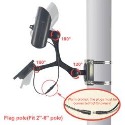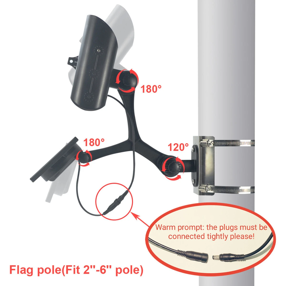 The Solar Flagpole Light converts sunlight into energy to power this light at night without the need for electrical wiring! This LED light charges during the day allowing the light up to 12 hours of runtime at night with a max output of 360 lumens. Installation is a breeze and can be installed anywhere along a flagpole. The light and solar panel are both independently adjustable to adjust up to 180-degrees for optimal illumination for the light and sun light absorption for the solar panel.