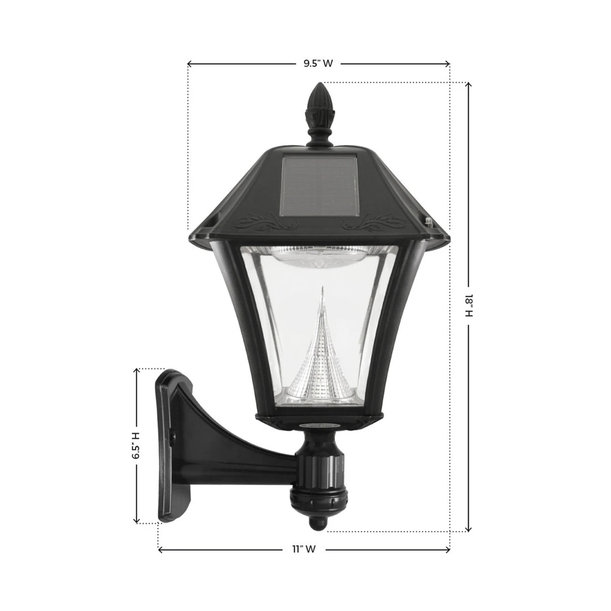 • Wall Mount Light Dimensions – 9.5″ W x 11″ L x 18″ H