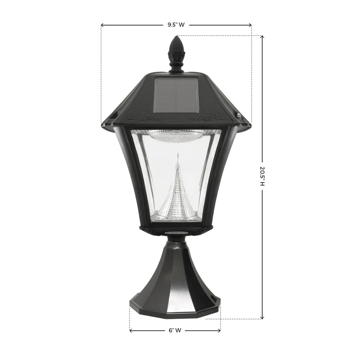 • Pier Mount Light Dimensions – 9.5″ W x 6″ L x 20.5″ H