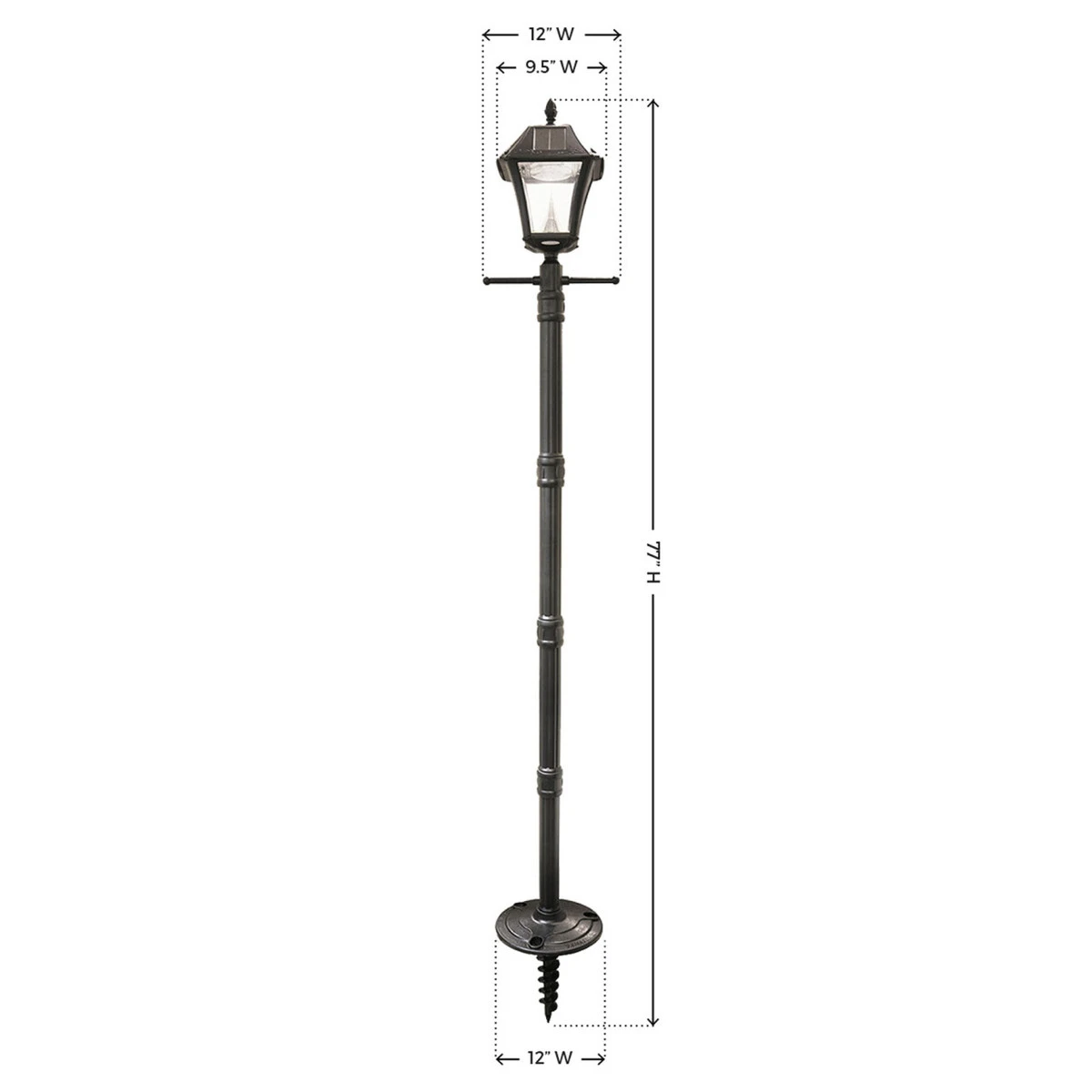 • Lamp Post Light Dimensions – 9.5″ W x 12″ L x 77″ H